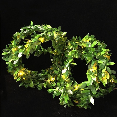 Gesimuleerde Groene Blad Rotan Led Koperdraad Licht String Ip44 Batterij Box Usb Lantaarn Voor Kerst Bruiloft Decoratieve Verlichting